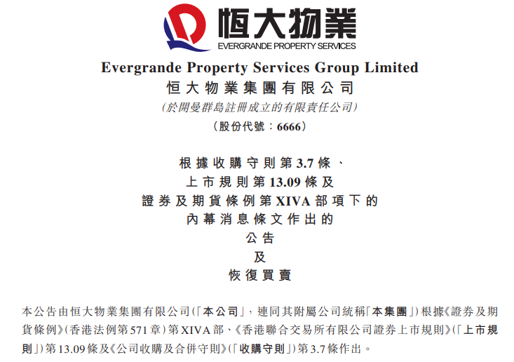 恒大物业9月11日晚间公告表示,公司在9月10日收到中国恒大以及CEG Holdings的共同及个别清盘人发出的接洽函。